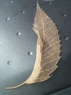 葉脈だけがレースみたいに残った葉っぱです。